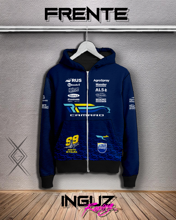 Camperas realizadas en deportivo frisado 100% poliéster, son camperas térmicas de media estación con puños y cintura reeb tejidos, limpieza en terminaciones y vista de cierre.