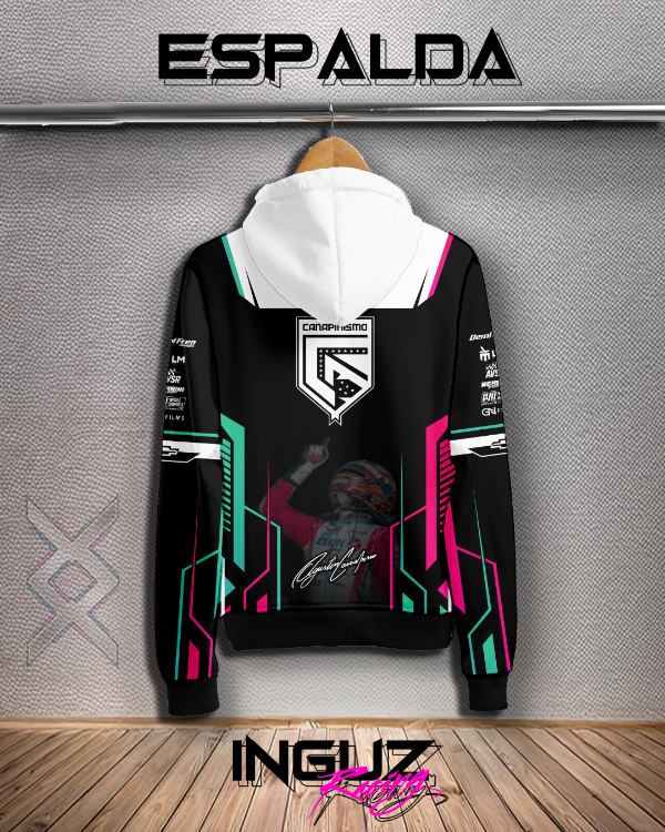 Camperas realizadas en deportivo frisado 100% poliéster, son camperas térmicas de media estación con puños y cintura reeb tejidos, limpieza en terminaciones y vista de cierre.