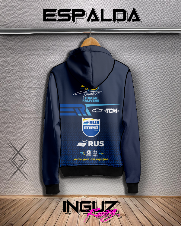 Camperas realizadas en deportivo frisado 100% poliéster, son camperas térmicas de media estación con puños y cintura reeb tejidos, limpieza en terminaciones y vista de cierre.