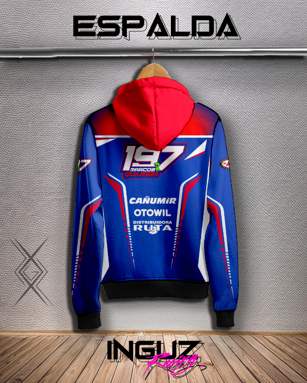 Camperas realizadas en deportivo frisado 100% poliéster, son camperas térmicas de media estación con puños y cintura reeb tejidos, limpieza en terminaciones y vista de cierre.