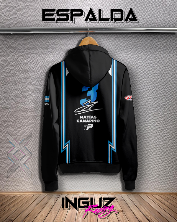 Camperas realizadas en deportivo frisado 100% poliéster, son camperas térmicas de media estación con puños y cintura reeb tejidos, limpieza en terminaciones y vista de cierre.